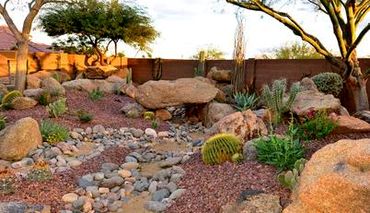 Thank you so much for turning my outdated dreary landscaping into a Sonoran Desert Oasis. I can't believe the transformation! From heavy blocked shaped trees and shrubs to beautiful eye catching groupings of cacti and succulents that are indigenous to Arizona accented by artistically placed boulders. My front yard looks like something you would encounter on hike in Sedona or Yosmite. As a matter of fact looking at the liken dancing across the boulder brings back fond memories of camping as a kid in California. As night falls, soft lighting dramatically enhances this spectacular terrain. You have truly created a dramatic backdrop to our home. Your crew was always considerate, polite, and professional. I was extremely happy with the work Colton did on our trees. I am so thankful that you talked me out of ripping those trees out! I do not even recognize them as the same trees! They are now a positive addition to our new landscape. This is my third home in Arizona and happily...the third time is the charm. You have completely exceeded my expectations! As I sit by my waterfall relaxing in my beautiful resort setting...I will be forever grateful to you for creating for me A Little Bit Of Heaven On Earth.